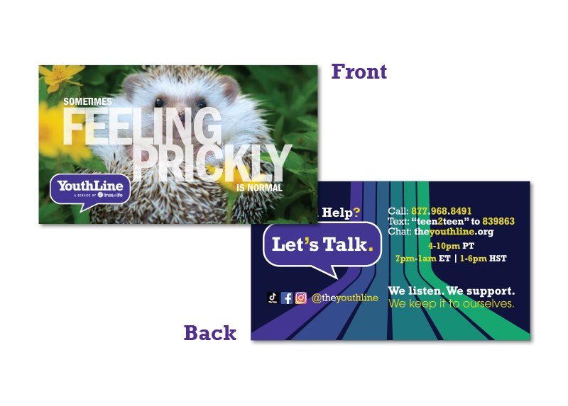 Wallet cards are the perfect size for students to carry around with them, so they have YouthLine’s information wherever they go. (Packs of 50)